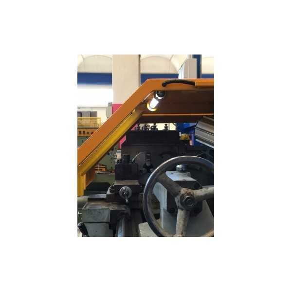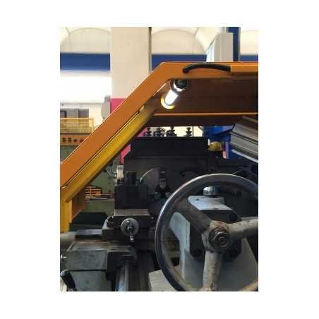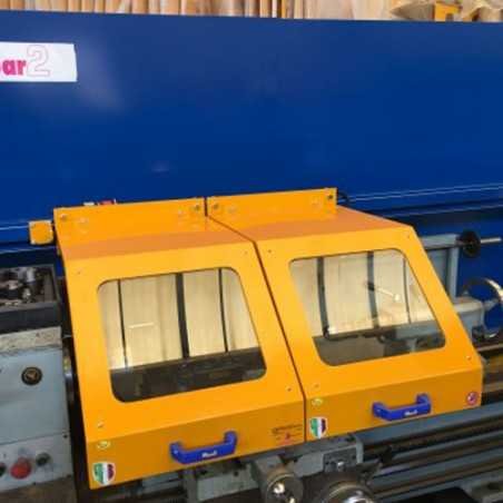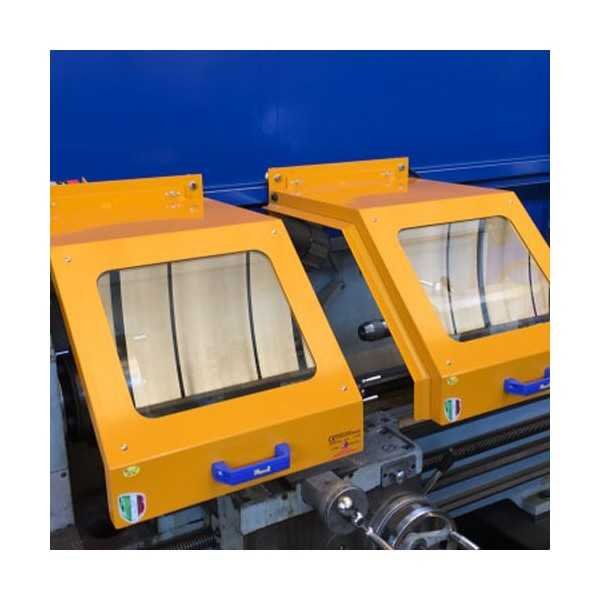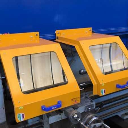 Double lathe protector sliding on a tubular structure. Fixed at the back of the lathe and equipped with a safety micro-switch.