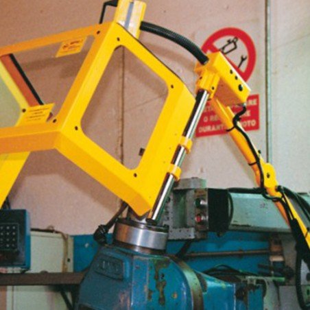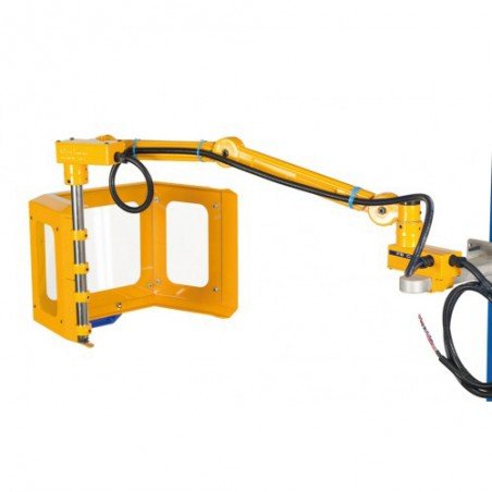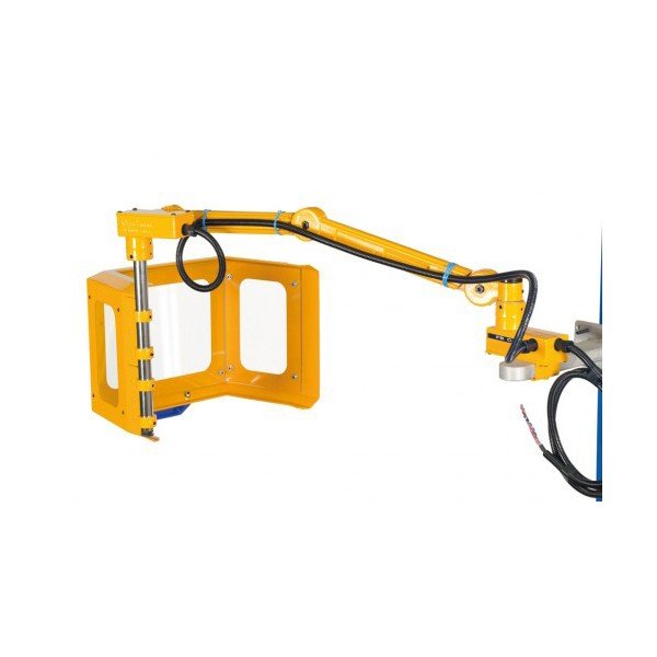 The triple microswitch allows a folding of both the screen and the arm, as well as the vertical movement of the latter. The articulable arm can be mounted on the left (LH) or right (RH) of the milling head and is adjustable in numerous positions to ensure perfect protection for the user.