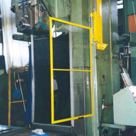 Shielding panel for boring machine consisting of a steel frame filled with impact-resistant and scratch-free polycarbonate. The panels are available in a right-hand (RH) and left-hand (LH) version and are attached to a height-adjustable support with safety switch. There is a choice of 3 types: o AL1CM with a panel of 800x900mm o AL2CM with a panel of 800x1000mm o AL3CM with a panel of 800x1200mm This screen protects the operator against the rotating spindle, chips as well as against cooling water and oil. Benefits: - Large swing-open panel - Easy height adjustment - Easy to install Specifications: - Available in a left and right version - 2 types available: o AL1CM with a panel of 800x900mm o AL2CM with a panel of 800x1000mm - Bracket with safety switch - Device supplied with CE conformity certificate and an installation and usage sheet