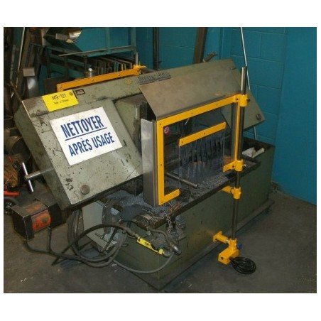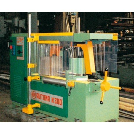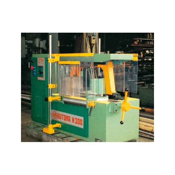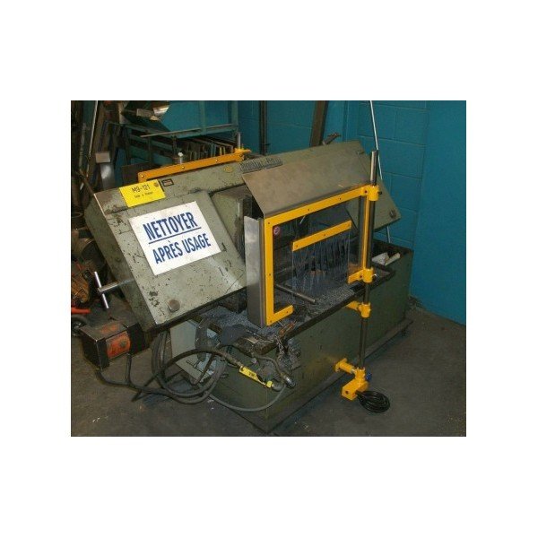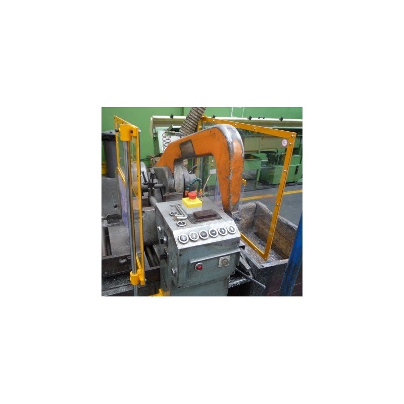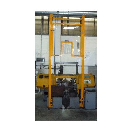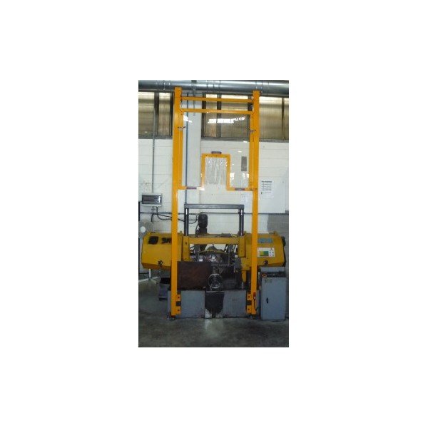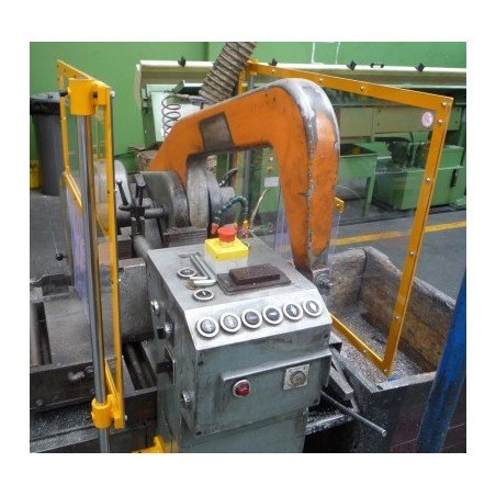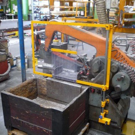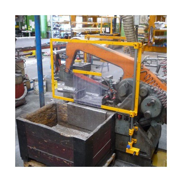 Double shielding for band and hacksaw machines consisting of a set of scratch-free and impact-resistant polycarbonate panels attached to a double bracket with safety switch.