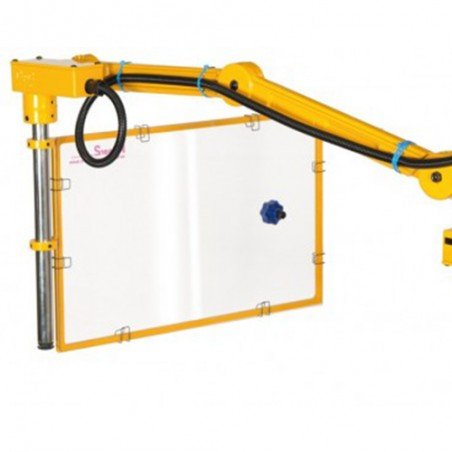 Le double interrupteur de sécurité permet à l'écran et au bras de se replier. Le bras articulé peut être monté à gauche (gauche) ou à droite (droite) de la tête de fraisage et est réglable dans de nombreuses positions pour assurer une protection parfaite à l'utilisateur.