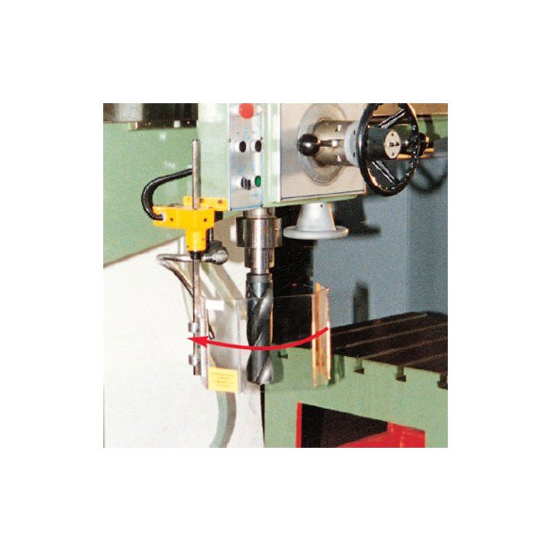 Cache de protection pour perceuse constitué d'un écran en polycarbonate résistant aux chocs et aux rayures, monté sur un support muni d'un interrupteur de sécurité. L’écran de protection est réglable en hauteur. La machine s'arrête lorsque le capot de protection est ouvert. Disponible dans les versions suivantes: o TRF: 307x130x150mm o TRG: 230x150x200mm o TRH: 280x150x200mm o TRK: 180x140 mm o TRI: 300x200x200mm o TRJ: 280x150x140mm Cet écran protège l'opérateur contre la broche en rotation et l'outil de coupe ainsi que contre les copeaux, l'eau de refroidissement et l'huile. Avantages: - Haute visibilité sur la broche et l'outil de coupe - Réglage en hauteur simple Spécifications: - écran angulaire en polycarbonate - écran disponible en différentes versions: o TRF: 307x130x150mm o TRG: 230x150x200mm o TRH: 280x150x200mm o TRK: 180x140 mm o TRI: 300x200x200mm o TRJ: 280x150x140mm - Interrupteur de sécurité - Appareil fourni avec certificat de conformité CE et fiche d'installation et d'utilisation